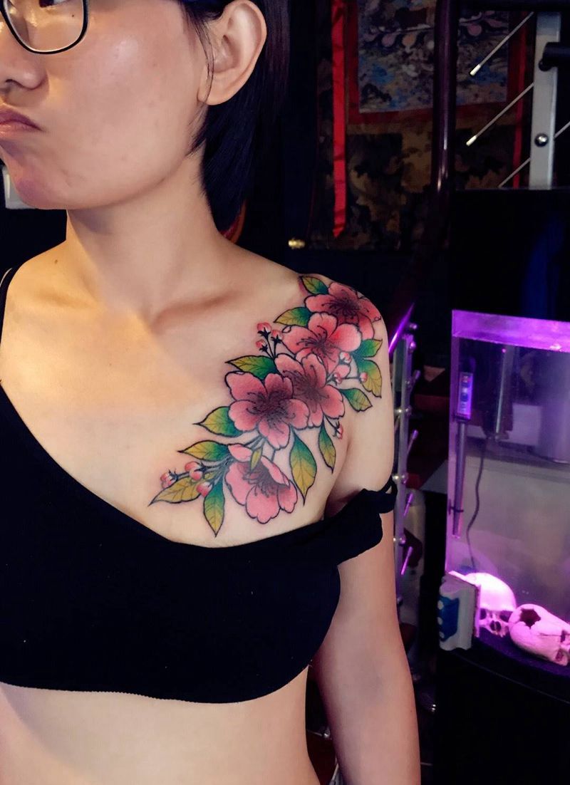 • 女性大花胸纹身_43张霸气漂亮的女性大花胸纹身图案作品