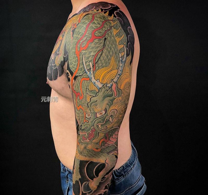 • T网红王老大花腿龙纹身图片_腿部新传统纹身图案