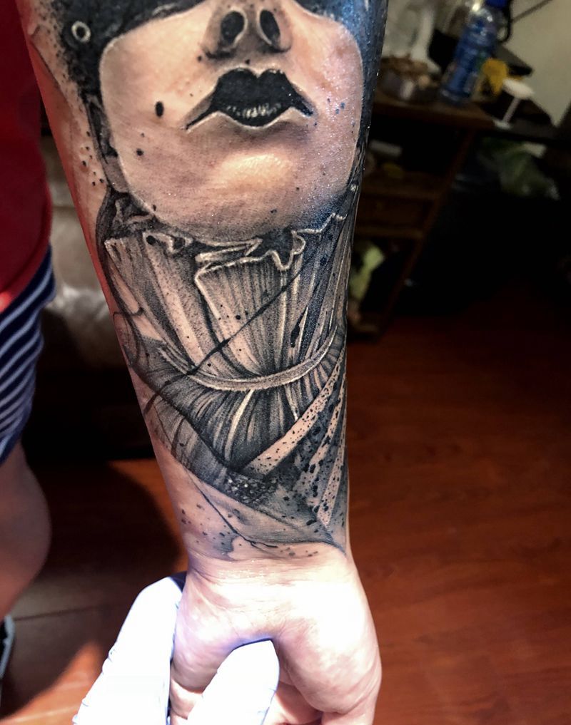 当前位置: 首页 >北京市纹身店-万相TATTOO纹身图案>欧美肖像纹身图片_手臂欧美写实点刺肖像人物纹身图案