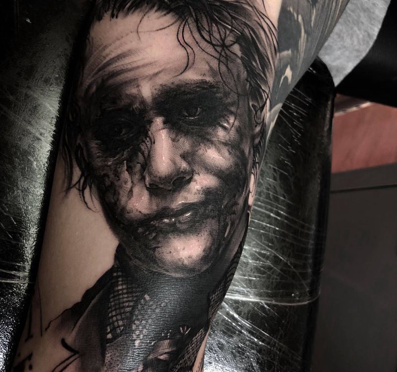 当前位置: 首页 >北京市纹身店-万相TATTOO纹身图案>小丑纹身图片_手臂欧美写实纹身图案