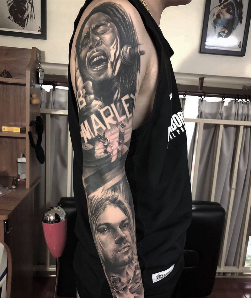 当前位置: 首页 >北京市纹身店-万相TATTOO纹身图案>大花臂纹身图片_手臂欧美写实纹身图案