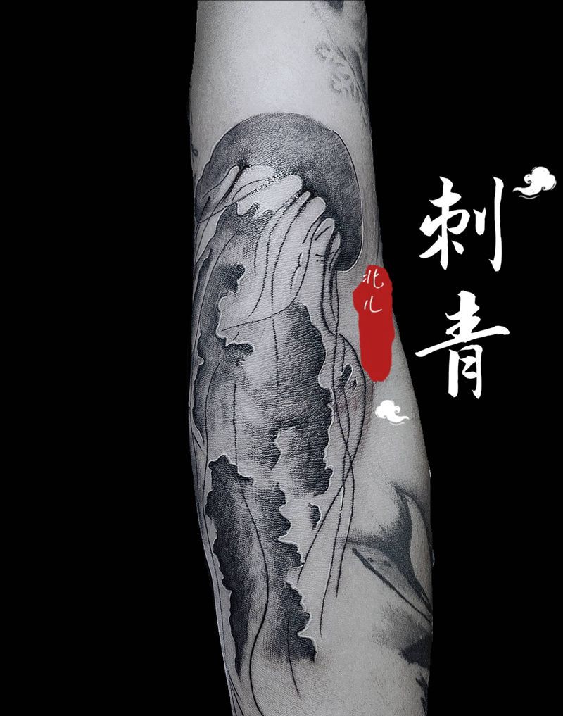 当前位置: 首页 >北京市纹身店-燊刺青纹身图案>水母纹身图片_手臂水墨纹身图案