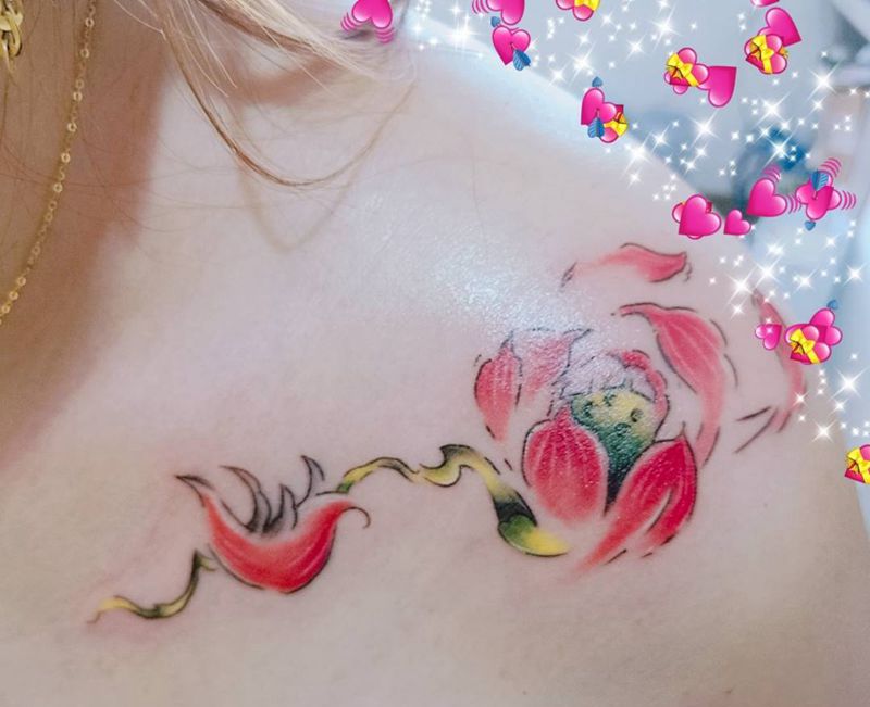 荷花纹身图片_肩部纹身图案