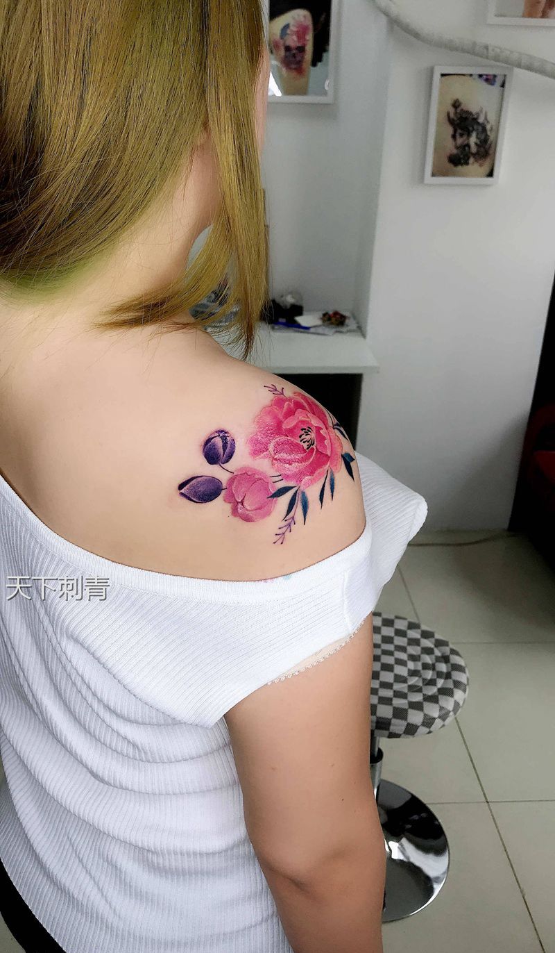 当前位置: 首页 >北京市纹身店-北京天下刺青工作室纹身图案>小清新风格肩花英文纹身图片_肩部水彩清新花英文纹身图案