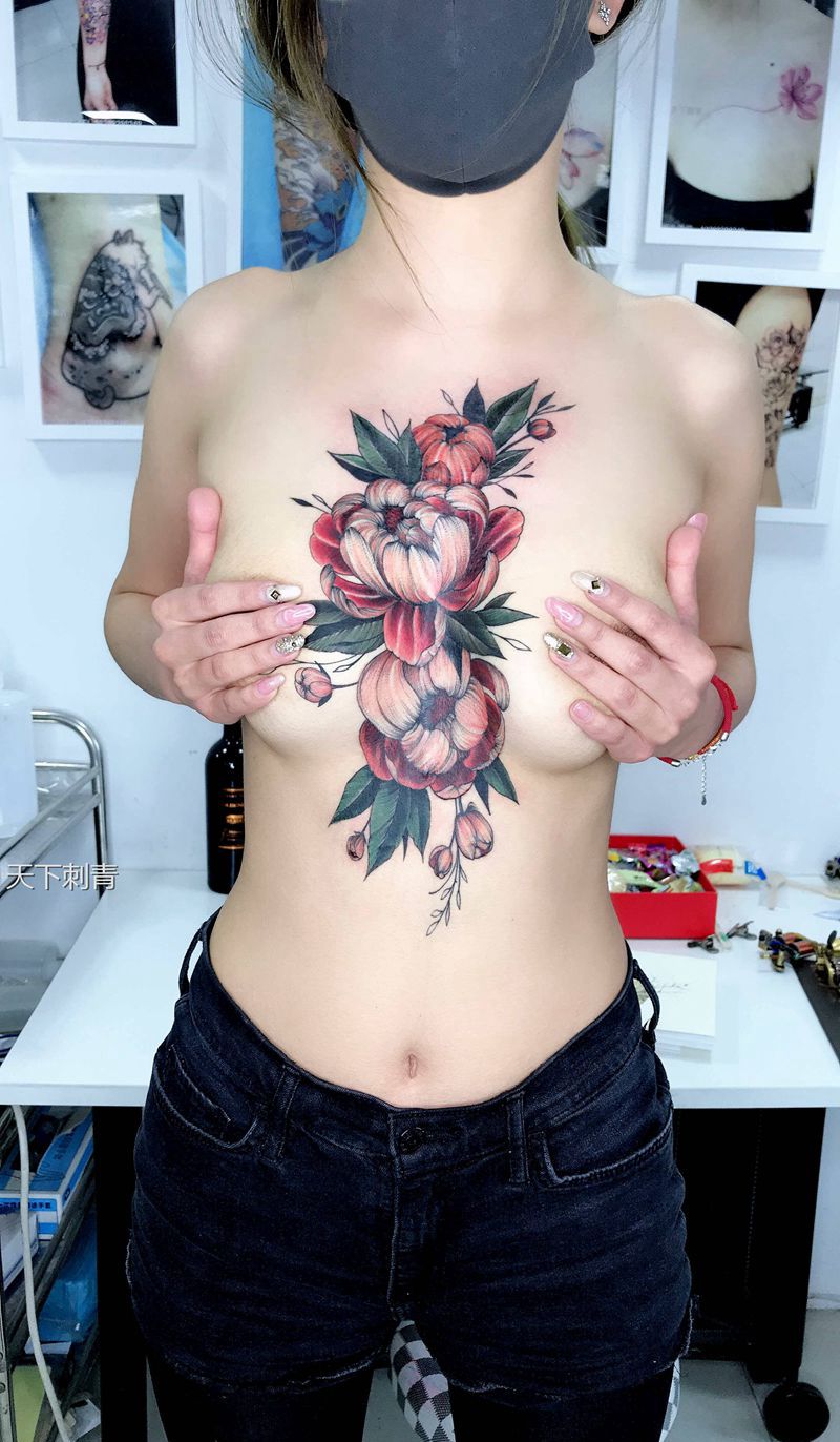• 女性大花胸纹身_43张霸气漂亮的女性大花胸纹身图案作品