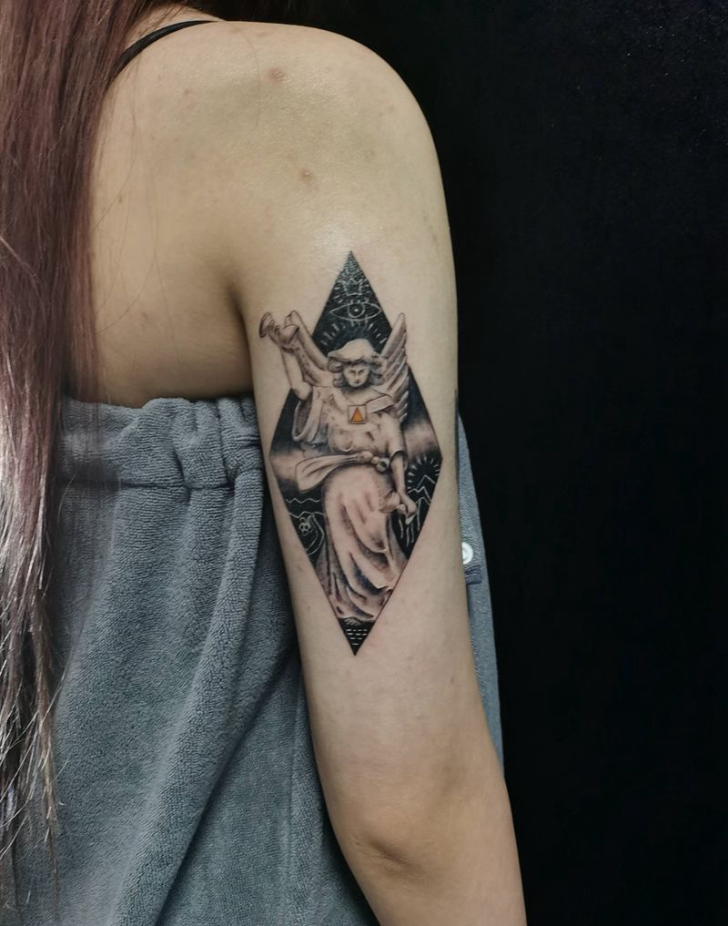当前位置: 首页 >北京市纹身店-空间•ART•TATTOO STUDIO纹身图案>原创节制天使纹身图片_手臂欧美写实纹身图案