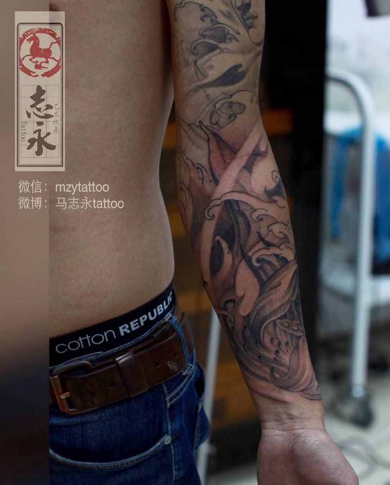 鲤鱼纹身图片_成品手臂传统动物北京纹身文身志永刺青纹身纹身图案
