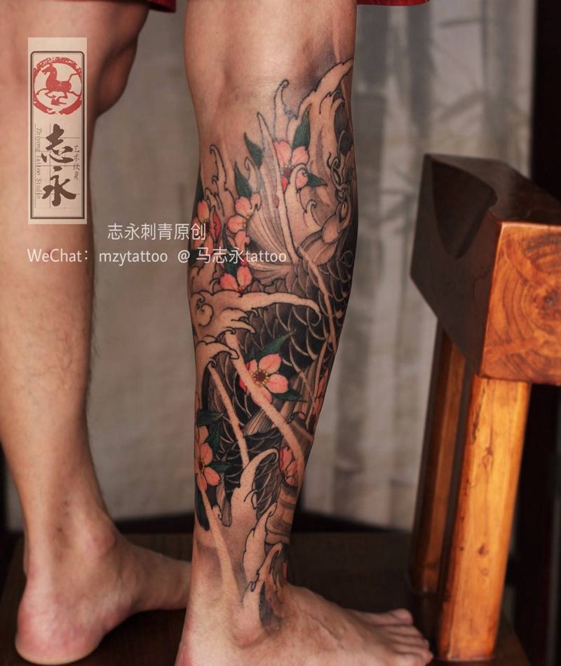 当前位置: 首页 >北京市纹身店-北京志永刺青工作室纹身图案>志永刺青原创鲤鱼樱花纹身图片_成品腿部传统志永刺青北京纹身 纹身文身原创纹身图案