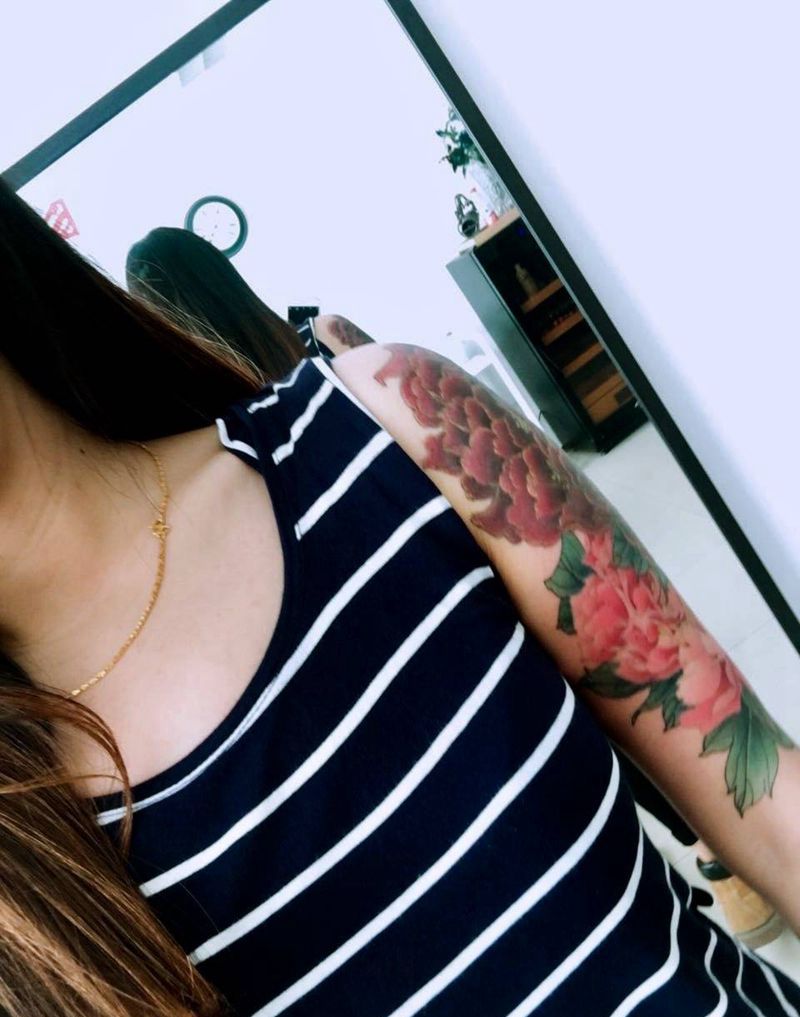 志永刺青牡丹遮盖作品纹身图片_成品手臂传统志永刺青纹身北京纹身 文身原创纹身图案