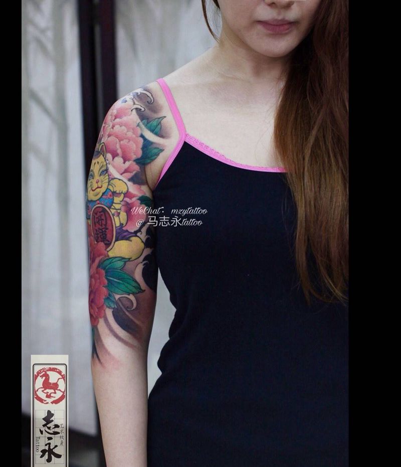 • T招财猫纹身图片