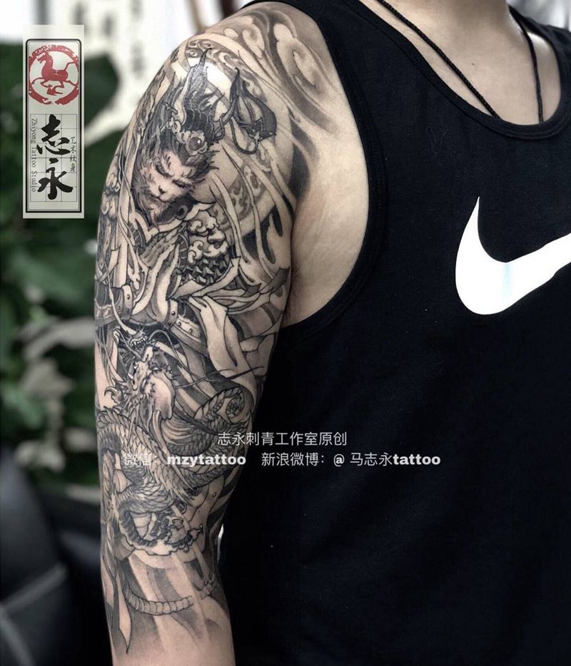 志永刺青原创斗战圣佛纹身图片_手臂新传统斗战圣佛孙悟空志永刺青纹身图案