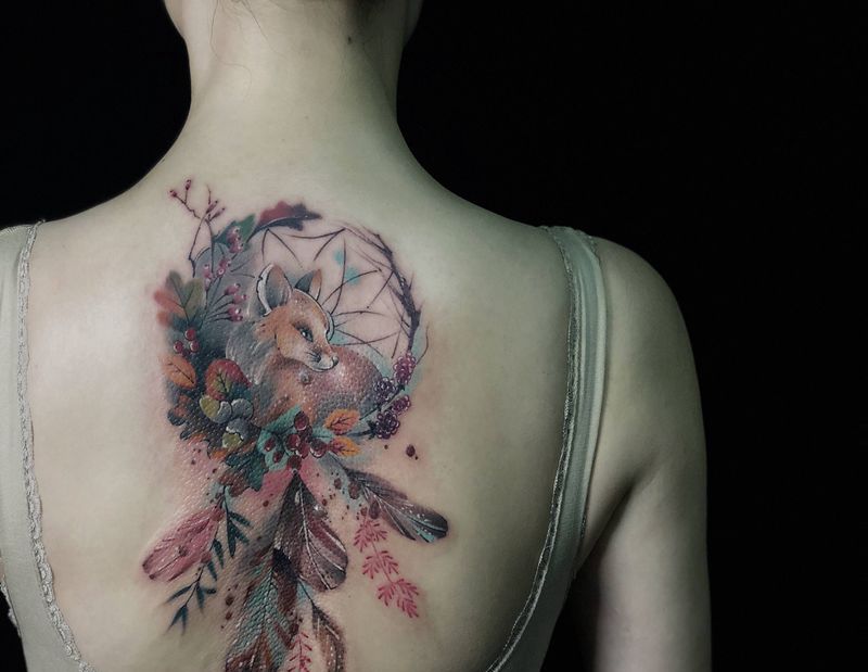 黑灰满背纹身图案