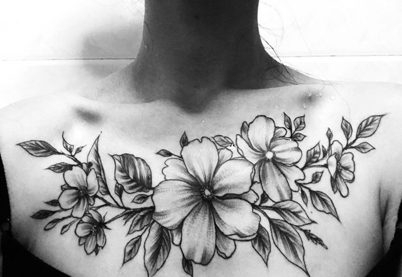 • 女性大花胸纹身_43张霸气漂亮的女性大花胸纹身图案作品