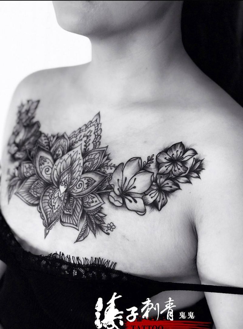 • 女性大花胸纹身_43张霸气漂亮的女性大花胸纹身图案作品