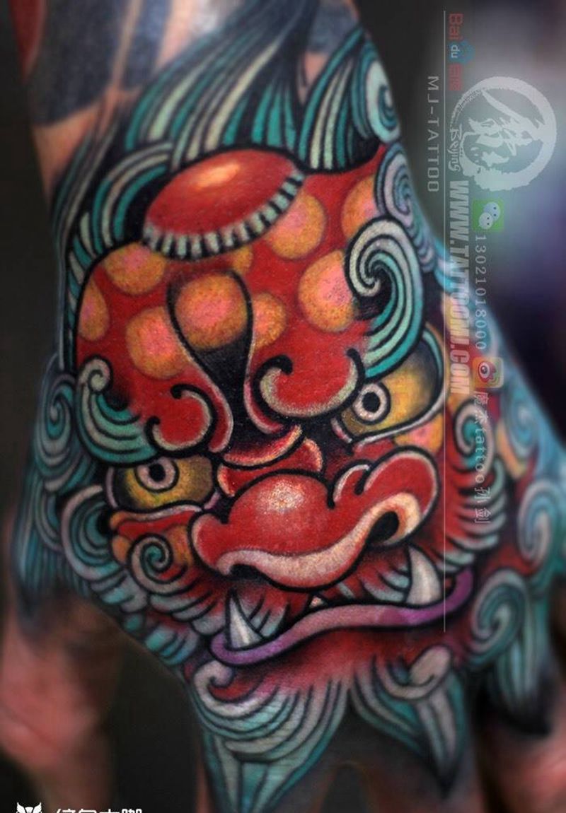 当前位置: 首页 >北京市纹身店-魔杰tattoo纹身图案>手背唐狮纹身图片_
