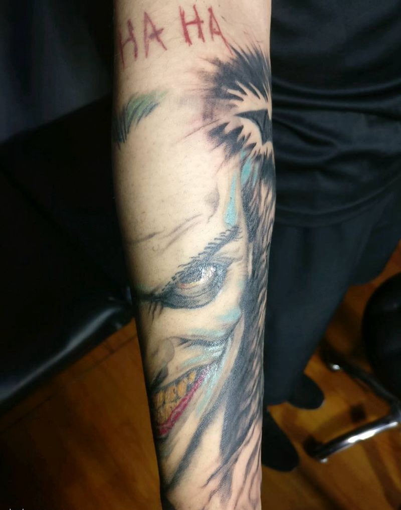 当前位置: 首页 >北京市纹身店-涅槃刺青纹身图案>小丑主体包小臂纹身图片_