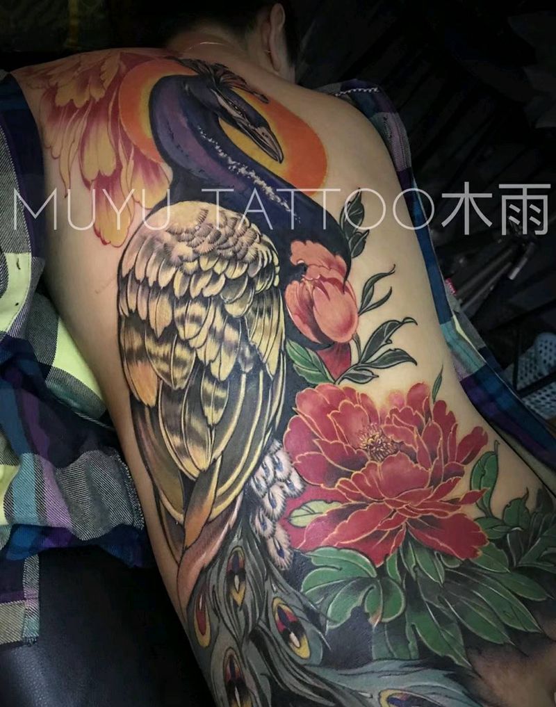 当前位置: 首页 >北京市纹身店-涅槃刺青纹身图案>孔雀纹身图片_背部传统动物成品纹身图案