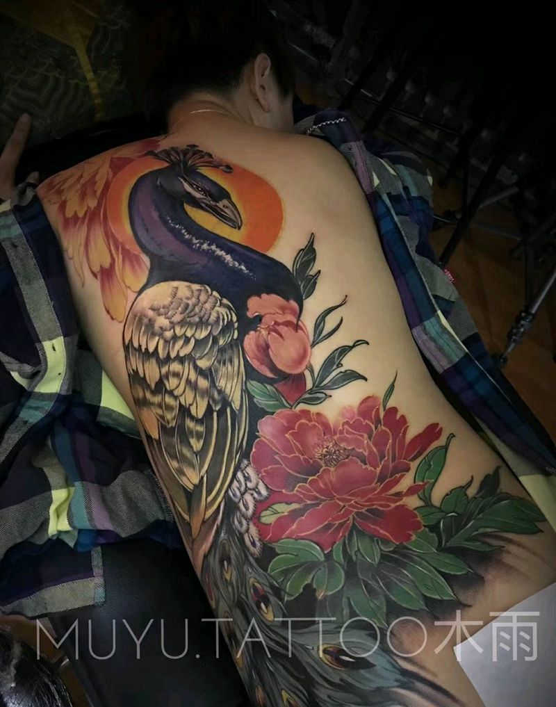 当前位置: 首页 >北京市纹身店-涅槃刺青纹身图案>孔雀纹身图片_背部传统动物成品纹身图案