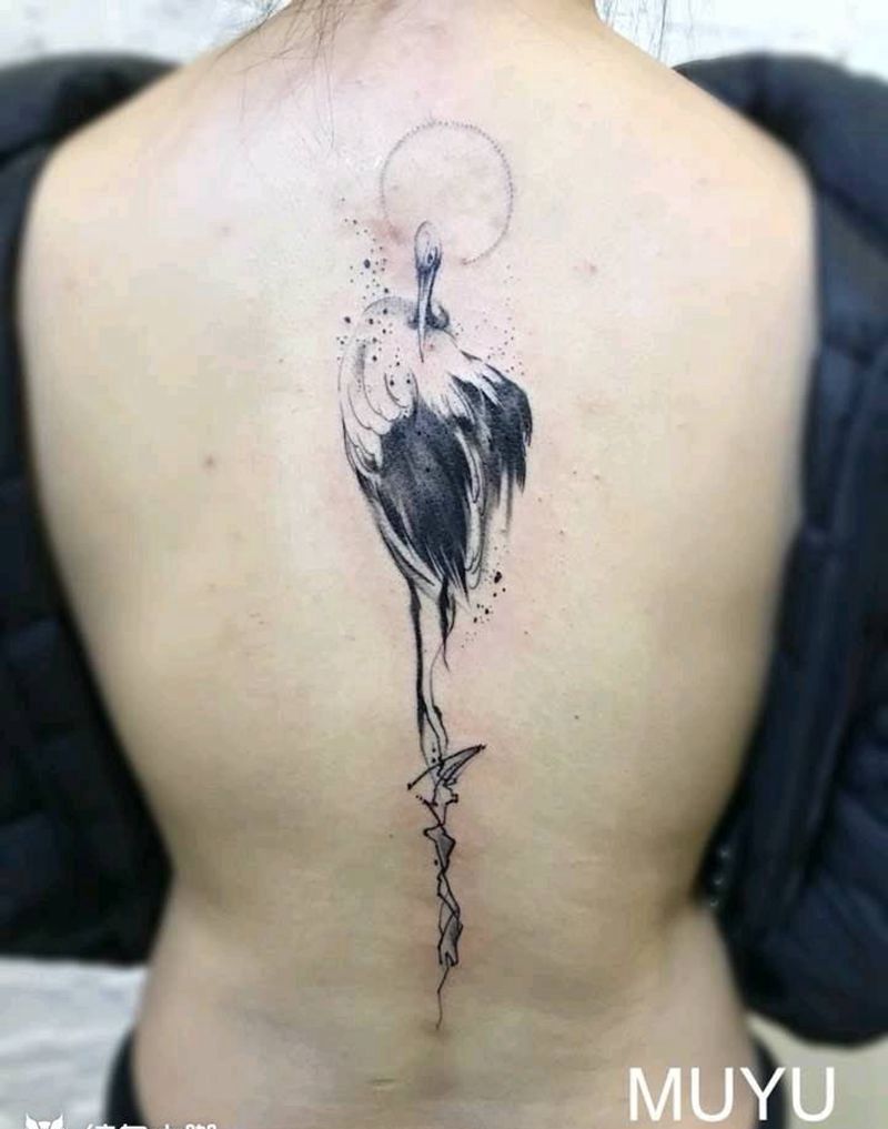 闲云野鹤纹身图片_背部国画动物成品纹身图案