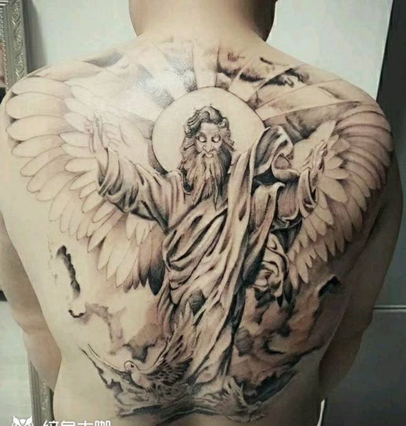 黑灰满背纹身图案
