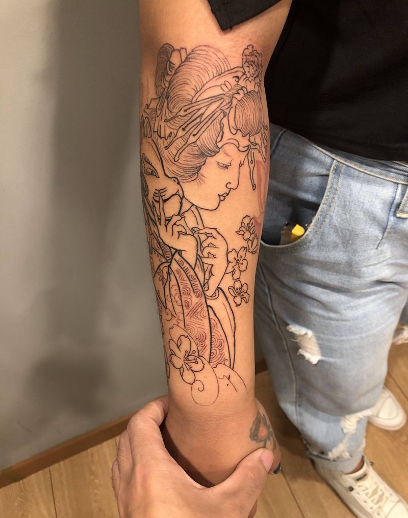 当前位置: 首页 >北京市纹身店-京范悟道刺青纹身图案>包小臂艺妓纹身图片_手臂新传统纹身图案