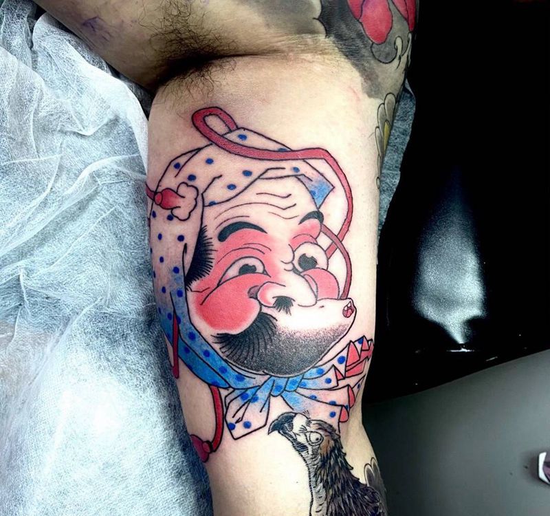 • T包小腿吹火男+阿多福纹身图片_腿部老传统新传统吹火男阿