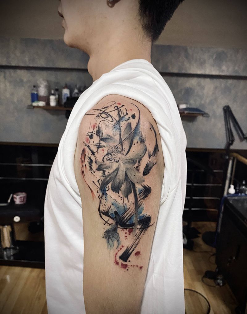 当前位置: 首页 >北京市纹身店-京范悟道刺青纹身图案>水墨莲花纹身图片_手臂水墨纹身图案