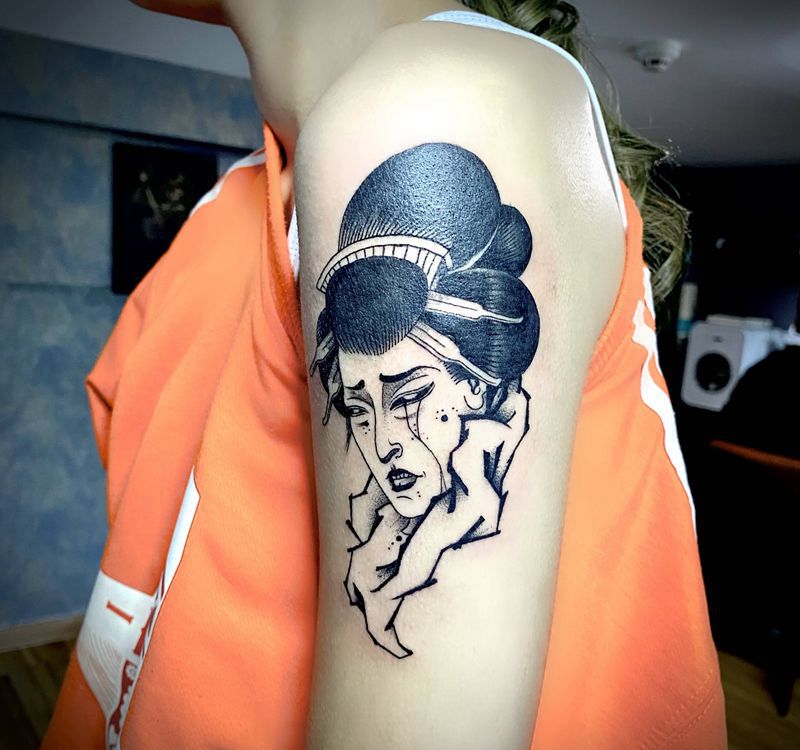 艺妓纹身图片_手臂老传统艺妓纹身图案