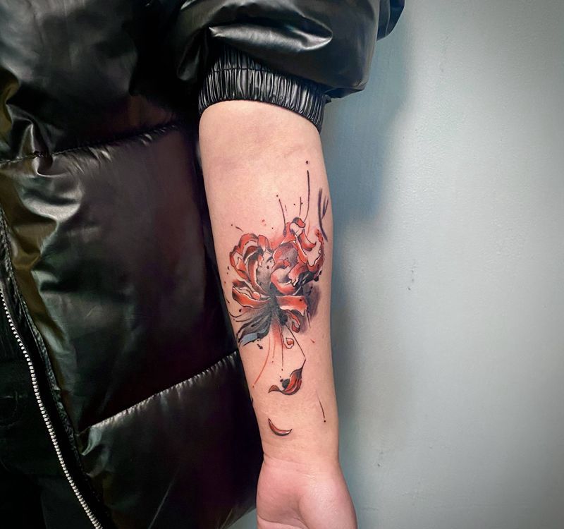 彼岸花纹身图片_手臂水墨水彩纹身图案