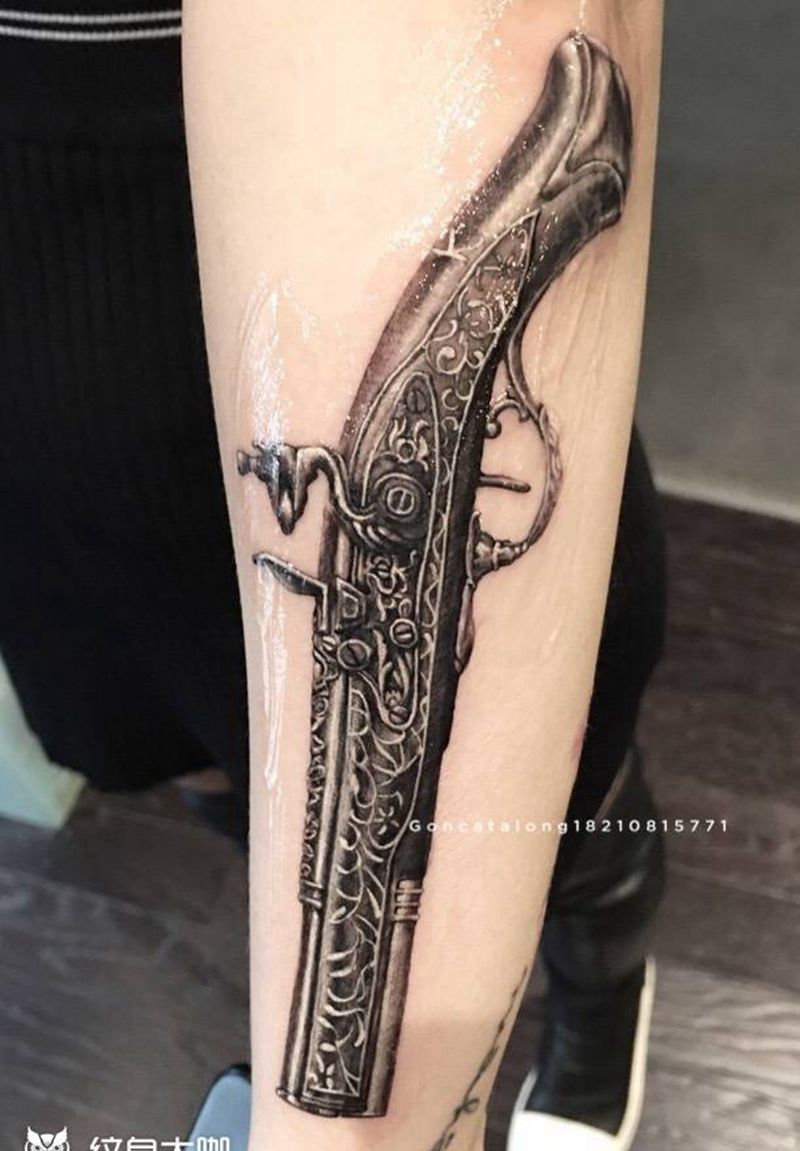 当前位置: 首页 >北京市纹身店-65 TATTOO纹身图案>复古手枪纹身图片_手臂欧美写实枪纹身图案