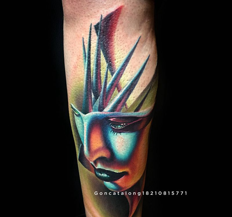 超现实彩色肖像纹身图片_手部腿部欧美写实人物纹身图案