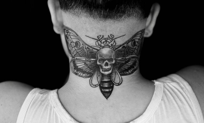 蛾子纹身图片_颈部新传统蛾子纹身图案