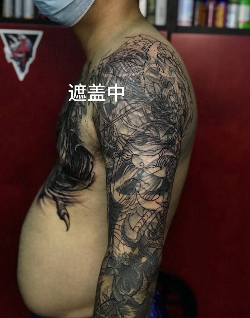 黑灰满背纹身图案