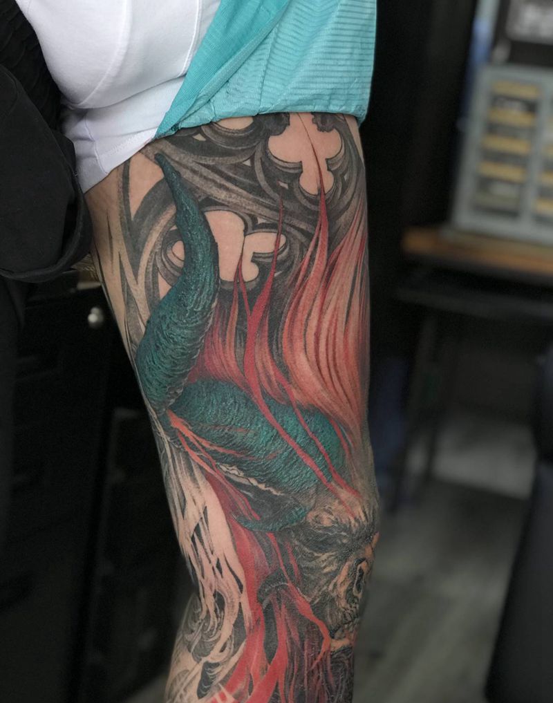撒旦未完纹身图片_腿部欧美写实原创纹身图案