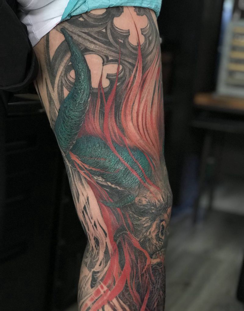 撒旦未完纹身图片_腿部欧美写实原创纹身图案