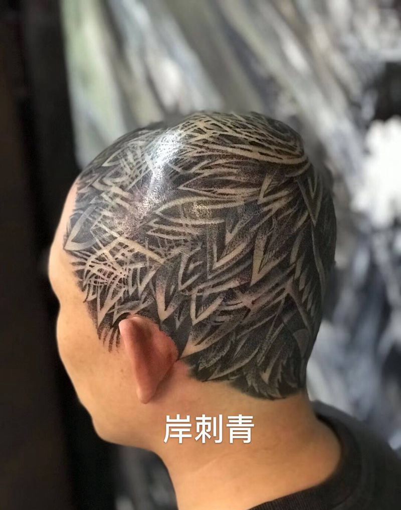 梵花似锦纹身图片_原创头部纹身图案