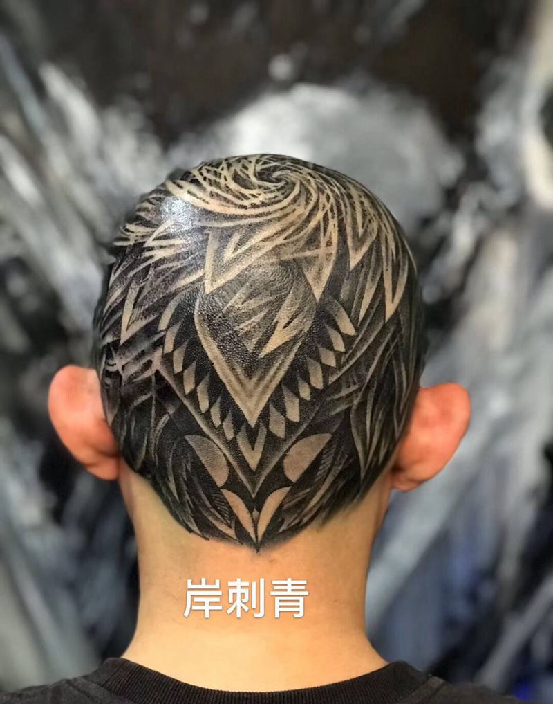 梵花似锦纹身图片_原创头部纹身图案
