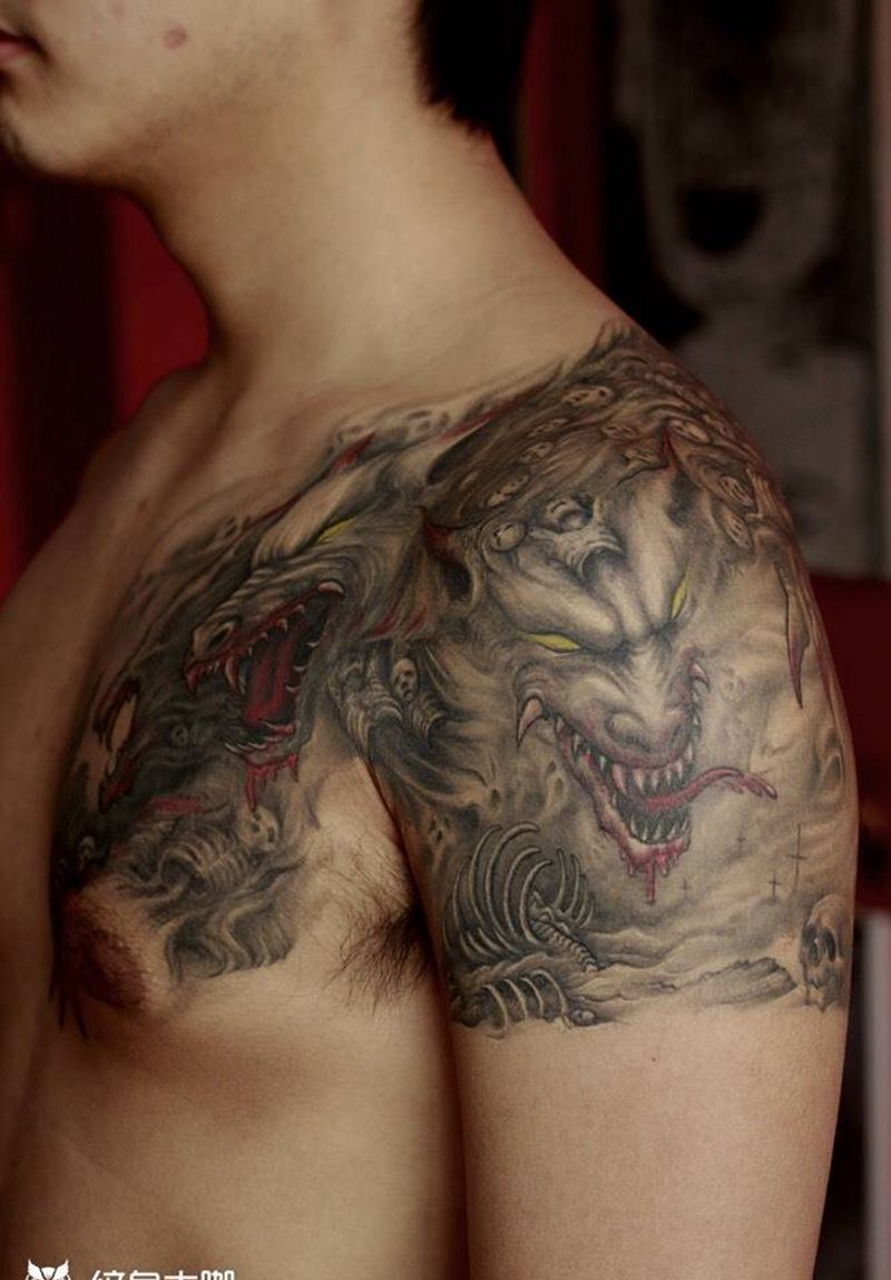 • 纹身吧推荐的披肩图腾半胛纹身图案作品展示