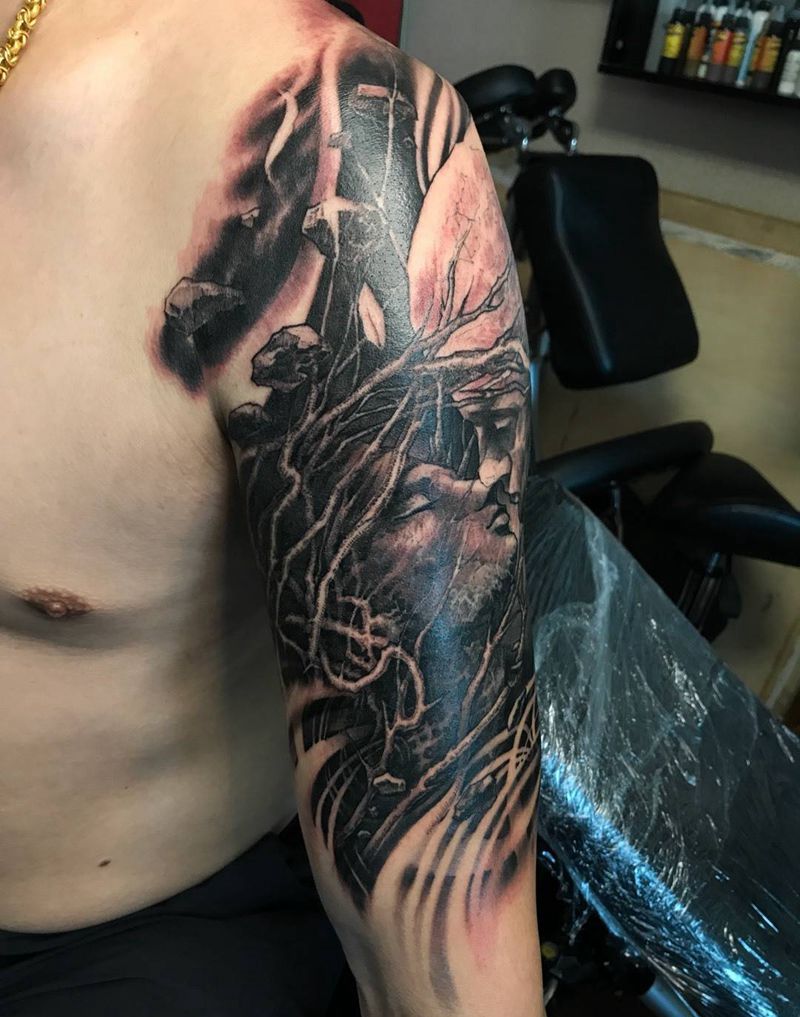 • 纹身吧推荐的披肩图腾半胛纹身图案作品展示