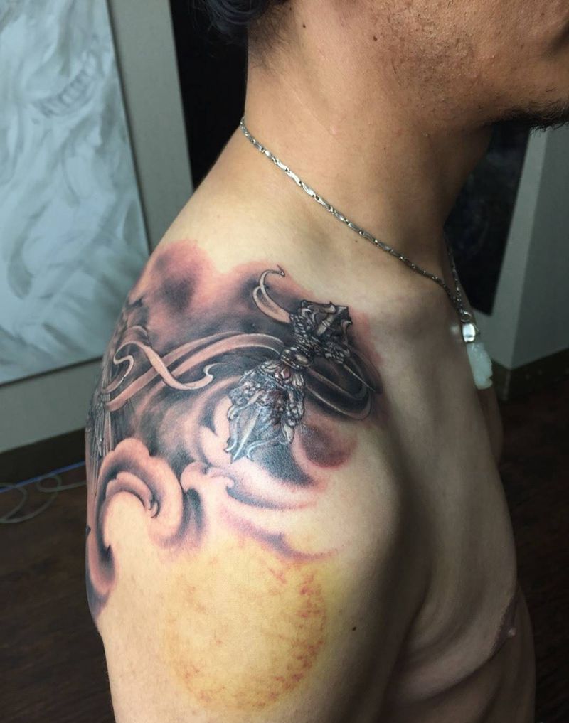 • 纹身吧推荐的披肩图腾半胛纹身图案作品展示