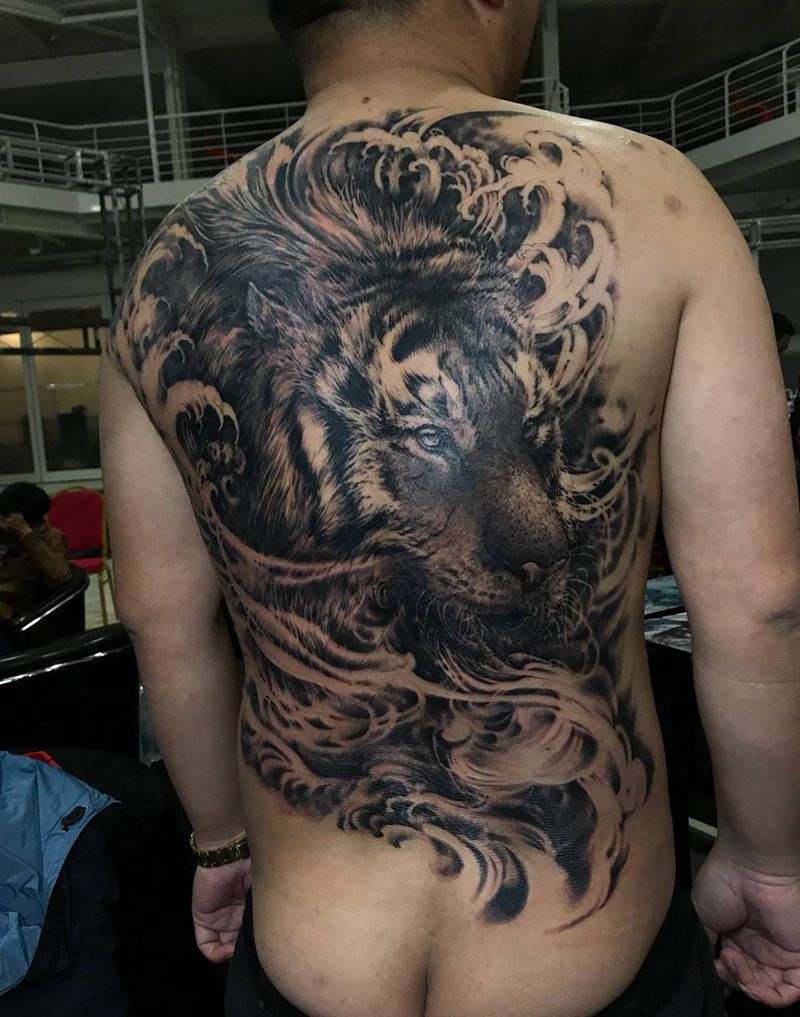 • 黑灰满背纹身图案