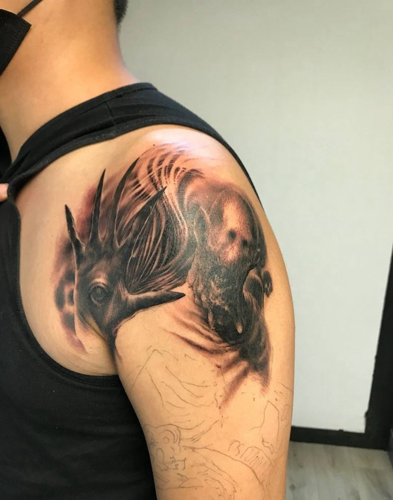 • 纹身吧推荐的披肩图腾半胛纹身图案作品展示