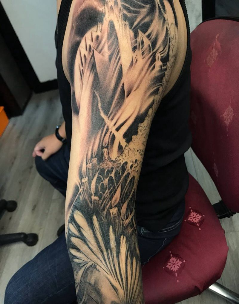 当前位置: 首页 >北京市纹身店-岸刺青纹身图案>哥特花臂 未完纹身图片_