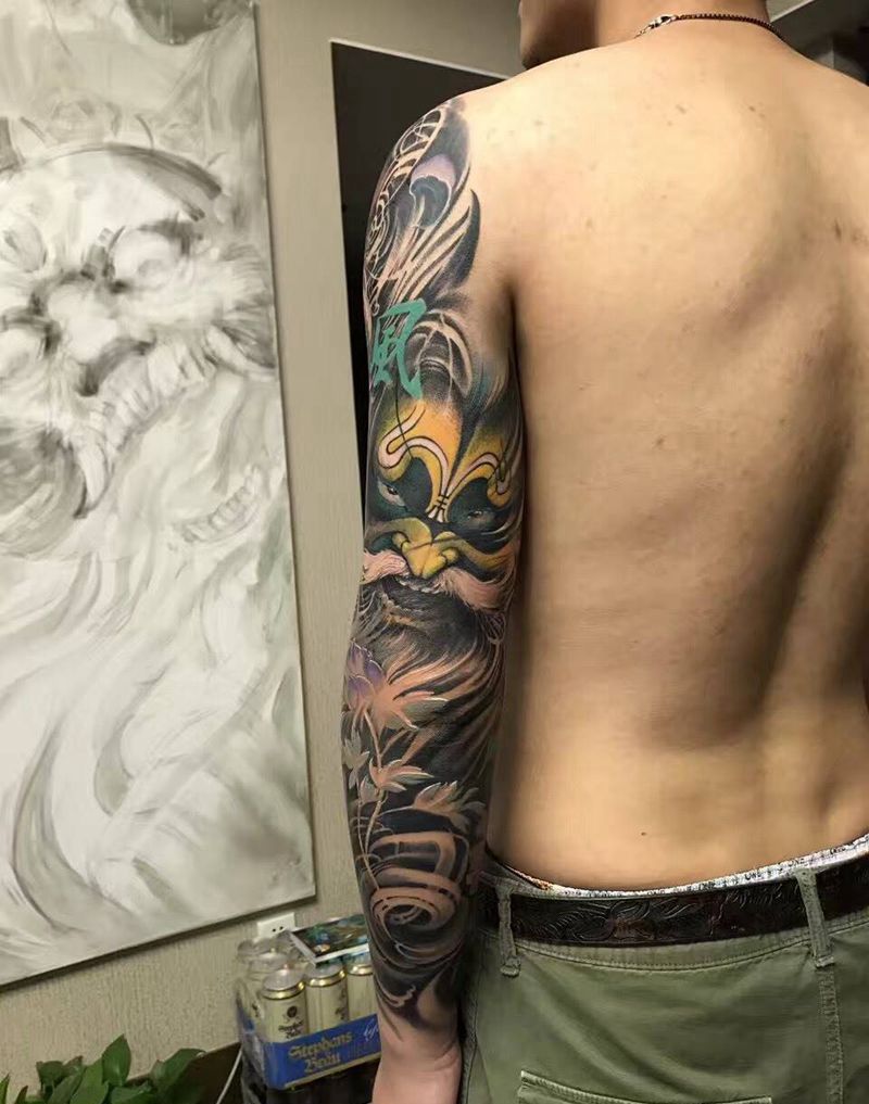 当前位置: 首页 >北京市纹身店-岸刺青纹身图案>中国风 水墨脸谱纹身图片_