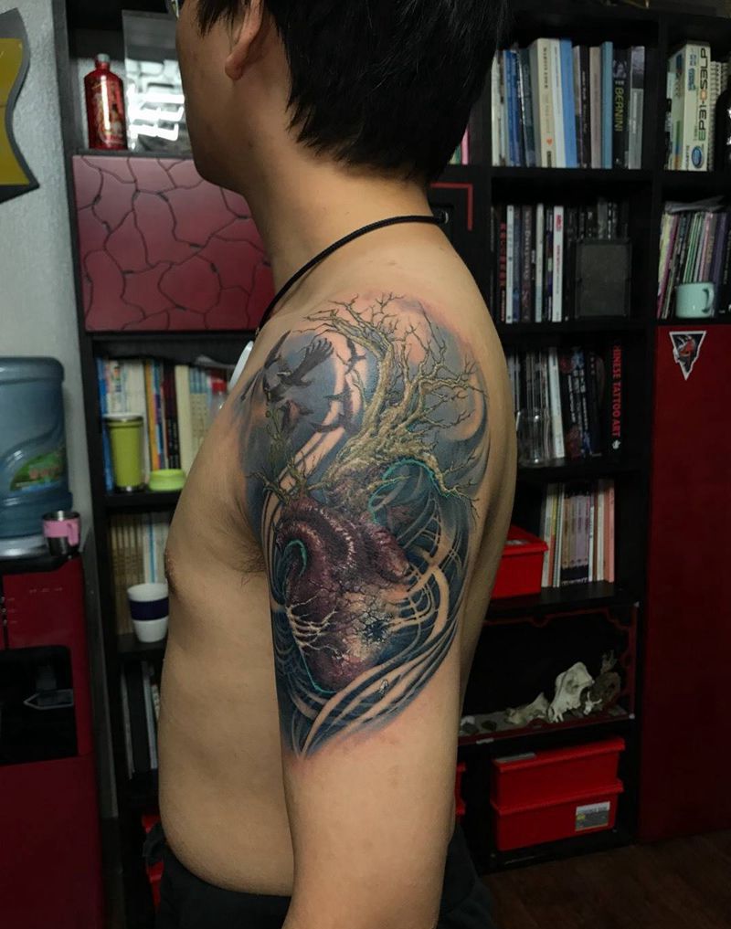当前位置: 首页 >北京市纹身店-岸刺青纹身图案>一念之间纹身图片_成品手臂欧美写实原创纹身图案
