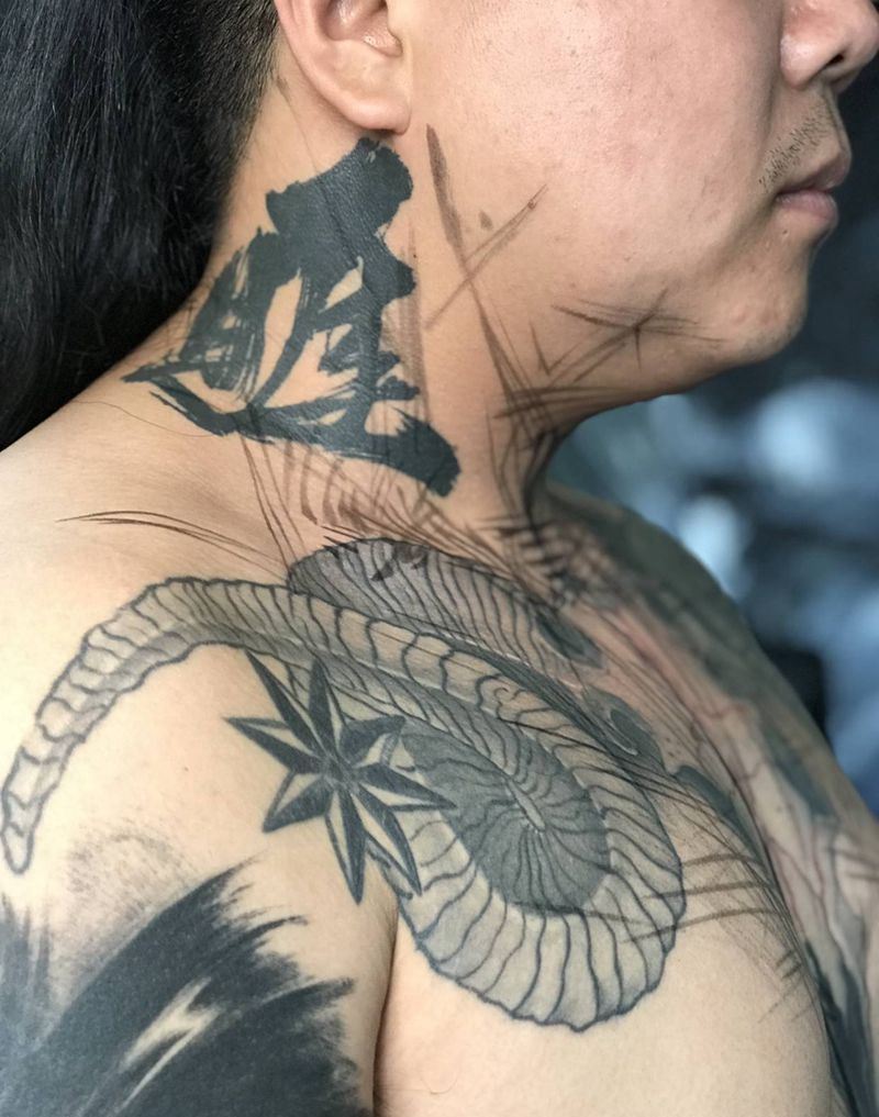 未完纹身图片_颈部纹身图案