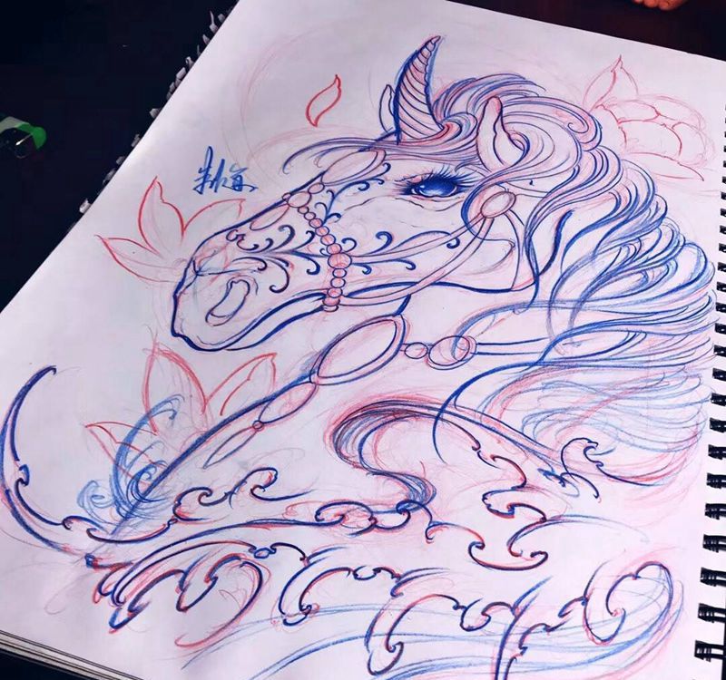 当前位置: 首页 >北京市纹身店-北京浪川刺青纹身图案>独角兽纹身图片_