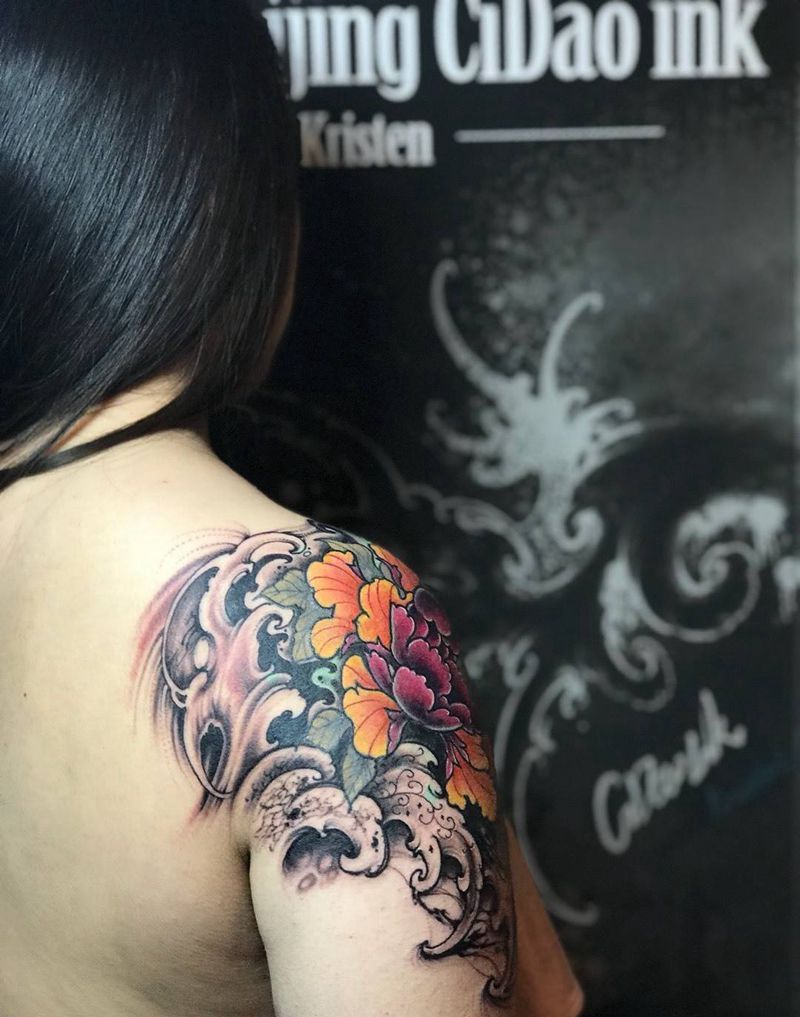 • 女性大花胸纹身_43张霸气漂亮的女性大花胸纹身图案作品