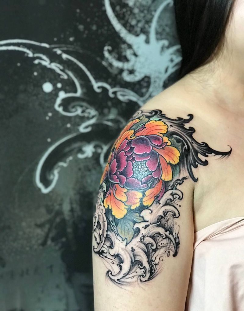 • 女性大花胸纹身_43张霸气漂亮的女性大花胸纹身图案作品