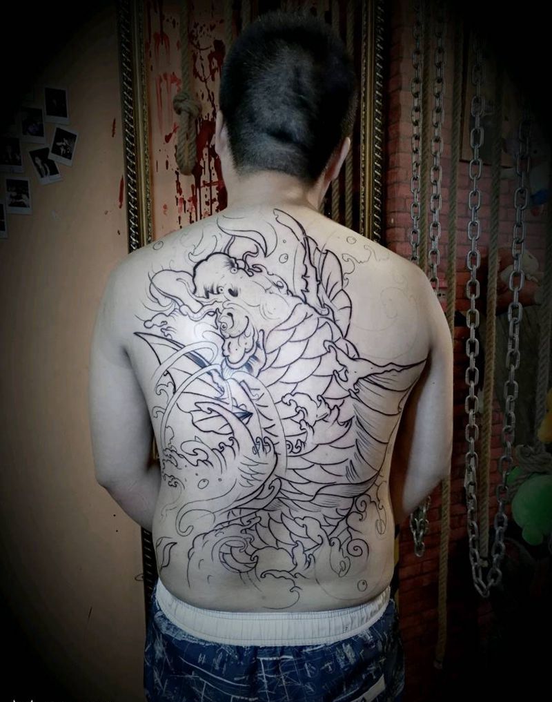 • T云龙九郎纹身图片_背部老传统云龙九郎纹身图案
